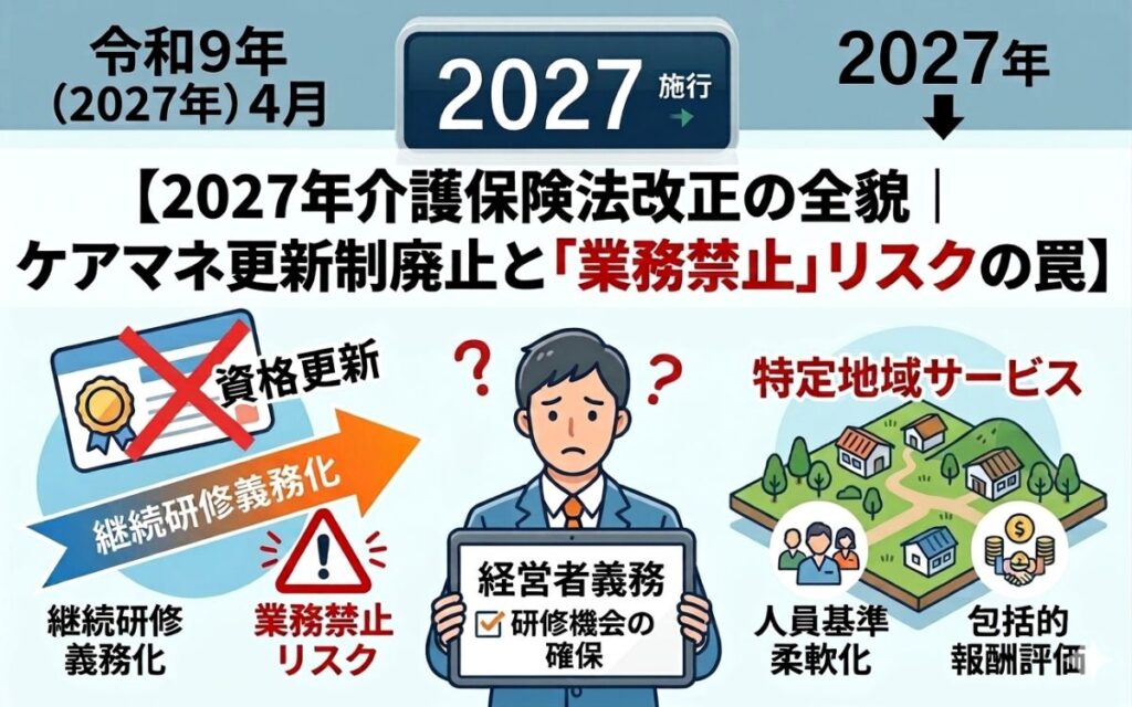 2026. 4. 20 2027年介護保険法改正の全貌|ケアマネ更新制廃止と「業務禁止」リスク